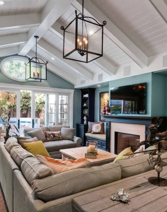 歐美風格裝修設計:壁爐的設計,一下子就能感受到家的溫暖。色調冷暖搭配適宜,擺設、家具、裝飾、燈具等令人舒適,沒有違和感。